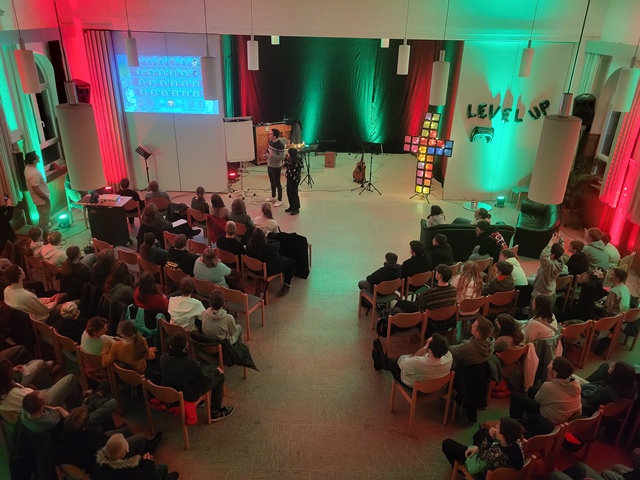 Der Obere Bereich umfasst einen Großen Saal der im hinteren Bereich noch einmal abgetrennt werden kann. Auf dieser Ebene befindet sich zusätzlich eine behindertengerechte Toilette und eine „Küche“. In den Räumlichkeiten finden die Impulse Abende, die wöchentliche Gemeinschaftsstunde am Sonntagabend und andere größere Veranstaltungen statt.