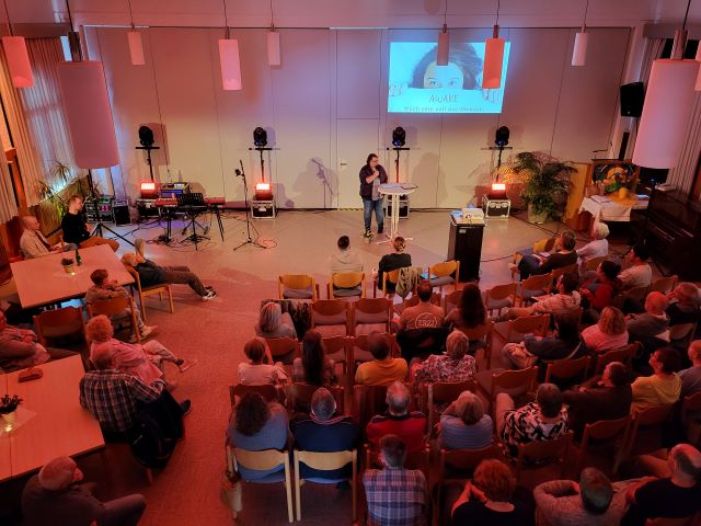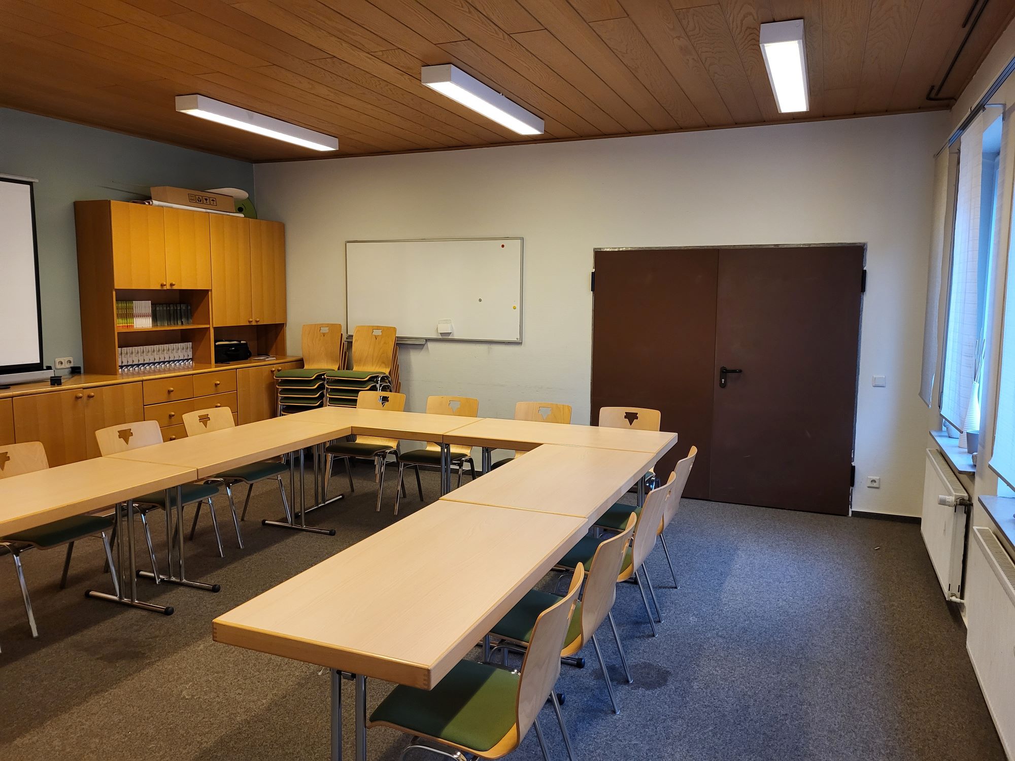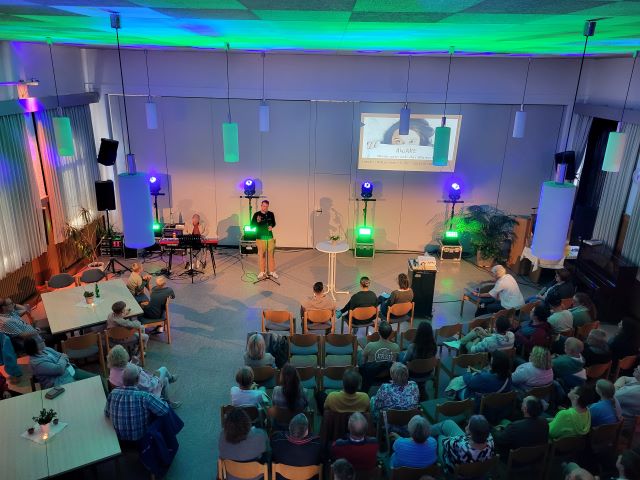 Die Technische Ausstattung umfasst Rednerpult mit Sprechanlage, Beamer Mischpult um Musik/Ton z.B. von Videos wiederzugeben.